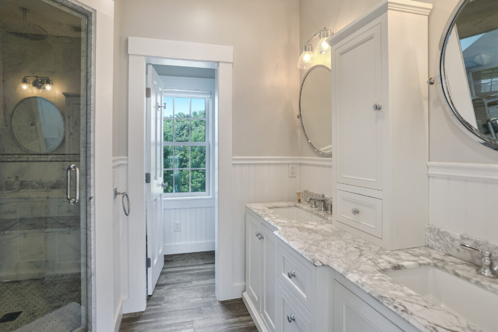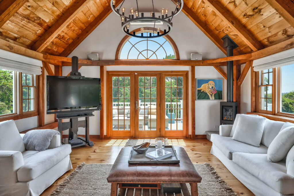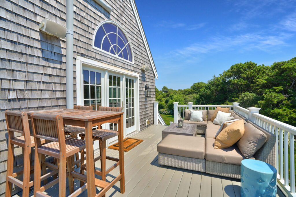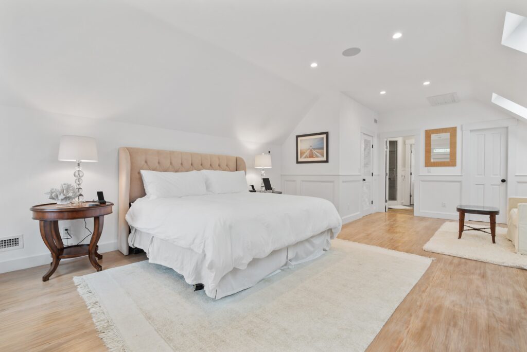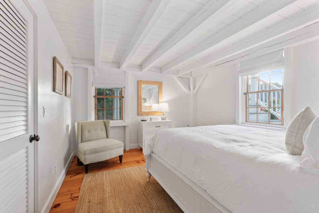 The layout of our Martha’s Vineyard luxury rental home features a spacious master bedroom with elegant French double doors that lead directly to the inviting pool area. Two additional guest bedrooms provide comfort and privacy for family and friends. Completing the design is a stunning private second master suite, thoughtfully located above the carriage house and three-car garage. This suite boasts air conditioning, a generous bathroom, a second laundry area, and a huge cedar walk-in closet, ensuring the perfect blend of luxury and convenience for all guests.