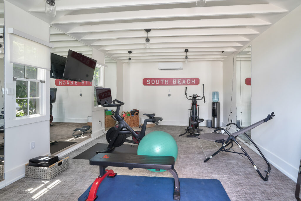 Workout Room w/Peloton Bike, Lululemon MIRROR™, Elliptical, Free Weights